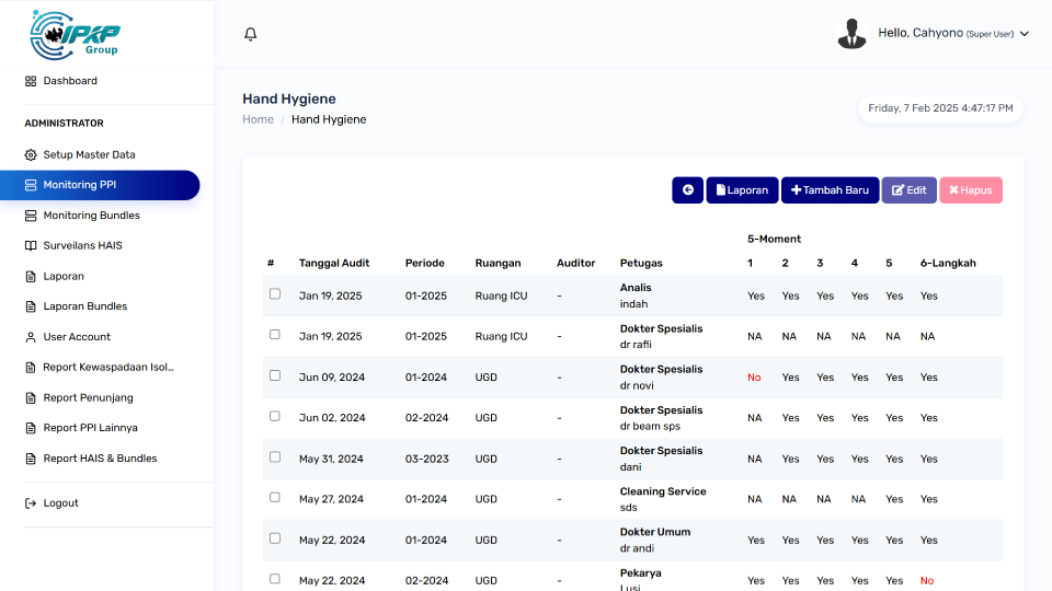 Tingkatkan efisiensi dan akurasi dalam pemantauan kepatuhan terhadap standar PPI & HAIs dengan sistem berbasis web yang modern dan terintegrasi..